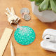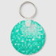 Chaveiro com um padrão impresso estilizado, divertido e estilizado, de "espelho de disco" em tons de azul verde e branco. Pode ser usado como um fundo para o seu próprio texto, imagens e ideias. Observe que esta é uma imagem de arte digital impressa, ela não brilha ou contém espelhos reais ou brilho.
