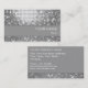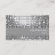 Modelo de cartão de negócios com um padrão impresso, glamouroso e escondido, de "espelho da discoteca" em tons de cinza prateada e branco. Pode ser usado como um fundo para o seu próprio texto, imagens e ideias. Observe que esta é uma imagem de arte digital impressa, ela não brilha ou contém espelhos reais ou brilho.