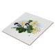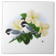 Duas galinhas entre as flores salpicadas num galho impresso em azulejos de arte cerâmica.