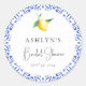 Impressione seus convidados com uma celebração banhada pelo sol com nosso Adesivo Redondo de Chuveiro de Noiva Limão com Azulejos Mediterrâneos. Este modelo personalizável e lindamente projetado captura perfeitamente a essência de um chá de noiva de verão, combinando a elegância atemporal dos azulejos mediterrâneos com o charme fresco e vibrante dos limões. Os intrincados padrões de azulejos azuis e brancos combinados com os acentos vibrantes de limão criam uma imagem deslumbrante que define o tom para um evento alegre e sofisticado. Adição perfeita para lembranças/presentes de chá de noiva. Certifique-se de explorar o restante da coleção para criar um chá de noiva coeso que irá impressionar seus convidados!