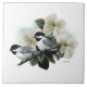 Dois chickadees entre flores empoleiraram-se em um ramo impresso em azulejos cerâmicos da arte.