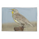 Capa de fronha da Cotovia-dos-prados Ocidental. Nas pradarias, a chegada dessas aves é tanto um sinal da primavera quanto o retorno dos tordos. Seu canto distinto e peitos amarelos brilhantes com o vee preto significam que a primavera chegou.
