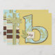 Pulando o sapo sobre a guarnição e a listra da fita imprima com borda scalloped e monograma de b com impressão floral e um Tag do botão do menino.