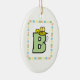 Uma abelha adorável voa em torno de uma letra verde B num ornamento