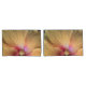 A fotografia original de MaeFlowers neste conjunto de fronhas é um close-up de uma flor de hibisco laranja. As pétalas da flor são de uma cor laranja-amarelada, tornando-se rosa e depois vermelho profundo no centro da flor. Podemos ver os detalhes do sistema de pólen da natureza, pontos vermelhos suaves e pequenas flores amarelas. As veias nas pétalas podem ser vistas se espalhando para fora em suas bordas onduladas. Um pouco de fundo verde folhoso destaca as ondulações.