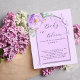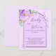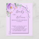 Um fundo violeta com arco lilás. Decorados com um verde-verde-vermelho-violeta, de rosa, de cor aquosa, de eucalipto-verde e borboletas. Personalize e adicione o nome da mãe a ser e os detalhes da festa. Texto: Bebê em Bloom. 1 folha = 1 convite impresso de borda a borda.