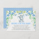 Folha de chás de fraldas elegante do tema do elefante, com elegante azul de flores aquáticas e folhas verdes