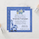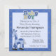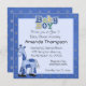 Personalize este convite de chá do bebê com os detalhes da sua festa. Fundo de pontos azuis com uma girafa azul.