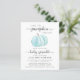 Um bebê bonitinho, alegre e amigável em termos de orçamento borrifado por convite por correio com "A Sweet Little Pumpkin Is On Your Way" escrito em uma mistura de tipografia moderna de cinza mole e roteiro de na moda com baloiços, e uma aquarela azul pastel de uma abóbora. Personalize o nome da mãe e os detalhes de aspersão em simples tipografia de cinzas.