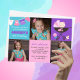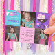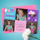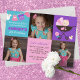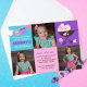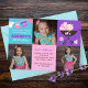 Rapariga Bebê 3 Foto Convites de Aniversário com Envelopes - 3 Faixas De Imagem Teal Blue Turquoise / Roxo / Rosa