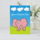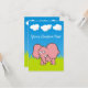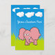 Bela caricatura de elefante. Design transparente adequado para elementos claros e escuros. Elementos de fundo amovíveis (céu, grama, nuvens). Pronto para adicionar o texto personalizado.