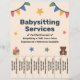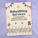 A clean and friendly flyer with Tear Off Strips in soft pastel colors, featuring building blocks, a teddy bear, and colorful stars! It could be perfect for all activities with kids such as babysitting, nanny, child care, tutor, etc