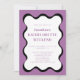 Prepare-se para comemorar em estilo com nosso convite à solteira de design de onda moderno. Este simples e atraente convite roxo, preto e branco é totalmente editável, permitindo que você o personalize com suas atividades exclusivas no final de semana. Anuncie "seu Fim de Semana da Bachelorette" com talento! De suas datas para cidade/local, este convite dá o tom para um fim de semana inesquecível. Ele inclui todos os detalhes essenciais, como o custo do fim de semana que cobre acomodações e refeições, e até convida os hóspedes para a RSVP. nosso convite capta a atmosfera romântica e feminina do seu evento. Informe aos seus amigos sobre o agendamento excitante, incluindo cocktails de boas-vindas, brunch, compra, horário do spa, janto de adegas, festa de dança e muito mais. Torne o seu fim de semana de despedida inesquecível com o nosso convite para na moda que reflete a personalidade única da noiva e estabelece o palco para uma celebração incrível!