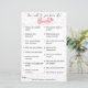 Jogo divertido para os amigos da noiva, vem com 16 perguntas. Você pode adicionar um prêmio ou uma penalidade para torná-lo ainda mais divertido
