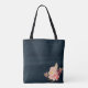 Fundo azul de Denim marinho com elegante aquarela flores em branco e burgundy com saco de tote de folhagem dourada