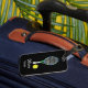 Bagagem bolas de tênis e raquete na etiqueta preta