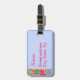 Esta etiqueta de bagagem ou a etiqueta da máquina de costura mostrará o seu amor por colchar enquanto identifica os seus bens enquanto você está viagem. Arte original de colcha combina blocos de colcha favoritos em cores vibrantes e dinâmicas em um fundo lavenderl. Um lado da etiqueta de bagagem é personalizável para mostrar seu nome e endereço. Um design de bloqueio está do lado oposto. Isto faz um presente de excelente para um amante de colcha ou colcha. Totalmente personalizável.