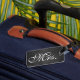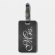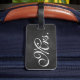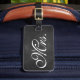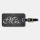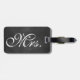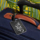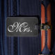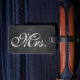 Uma marca de bagagem da Sra. Trendy em um fundo de quadro. Desloque-se para ver a etiqueta do Sr. Coordenador.