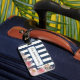 Etiqueta de bagagem divertida de marinheiro azul e branco com flores. Sua informação foi inserida no verso. O ditado pode ser mudado para o que você quer.