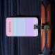 Design apresenta faixas lilás, roxas, azuis, turquesas e cor-de-rosa com dourado brilhante. Pode ser personalizado com seu nome e detalhes de contato.
