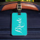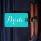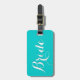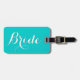 Etiqueta de viagem de casamento personalizada para noiva. Design de texto azul e branco de turquesa elegante. Bela ideia de presente personalizado para recém-casados na lua de mel.