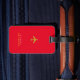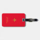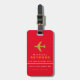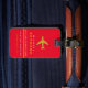 Uma bela etiqueta de mala... elegante e moderna design para ajudar a identificar sua bagagem no aeroporto... nome personalizado... modelos para informações sobre você... com a imagem do mapa do mundo e do avião amarelo em fundo vermelho (cor personalizada) sólido