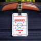 Personalize esta etiqueta de saco de hóquei com o nome e o número do jogador.