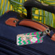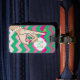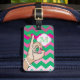 bonito etiqueta de bagagem de monograma rosa e verde. Estilo do Monograma