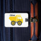 Veículo de construção de caminhão de lixo amarelo divertido com o nome do seu filho. Você pode alterar o texto, o estilo e a cor da fonte. Nome de etiqueta infantil.