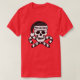Crânio em chapéu preto de Papai Noel com texto 'Bah Humbug' e telas de doces listradas preto/branco.