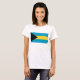 A frente desta t-shirt exibe corajosamente a bandeira das Bahamas com o seu triângulo preto distinto com bandas azuis e amarelas à direita. Isto é combinado atrás por um mapa atraente das Bahamas.