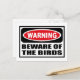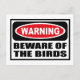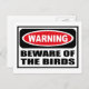 Aviso BEWARE DAS AVES Cartão-postal que você pode personalizar em www.WarningSignShirts.com e apresenta um sinal de aviso vermelho e preto e BEWARE DAS AVES em negrito para avisar o mundo. Você também pode personalizar seu próprio sinal de aviso Cartão postal com o texto desejado.
