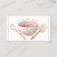 Ilustração elegante de aquarela, chef pessoal ou cartão de visita de restauração com uísque, colher e tigela. Adicione seu nome em um tipo curvo bonito acima da tigela e seu título dentro na tigela. Um estilo único.