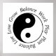 Equilíbrio - Play Plan Live Love Cresce - poster branco com letra preta de script e símbolo yin yang.