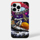 Arte vetorial original de um astronauta com queijo luar e passando uma fatia para uma alienígena. Criado no vetor.