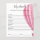 Convide amigos e família para compartilhar a alegria da sua chegada com este chá de fraldas, com um balão de ar quente rosa-d'água. Itens correspondentes disponíveis. Respostas: CRAVINGS, CRYING, PACIFIER, FRASCO, LUZ NOTURNA, LULLABY, STROLLER, EPIDURAL, BURP, ALTA CADEIRA, SACO DE FRALDA, SWADDLE