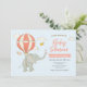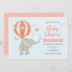 Elefante bonito e lunático com um convite do chá de fraldas do balão de ar quente com uma página traseira manchada bonito, apropriada para que uma mãe espere um bebé.