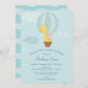 Um adorável convite de chá de fraldas de menino azul com uma girafa em um balão de ar quente com nuvens fofinhas. Este doce convite de chá de fraldas é uma maneira super na moda de dar as boas-vindas aos seus convidados de chá a um chá de bebês queridos.