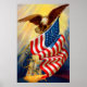 Bald Eagle 4 de julho poster vem com uma bela águia voadora calva no ar segurando em uma bandeira americana com raios solares brilhando nele. Esta é uma bela foto nesta poster