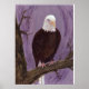 Aproveite esta brilhante e surpreendente impressão de arte de um ícone americano, a águia calva. O fundo é rico em matizes roxos. A impressão de arte é de uma pintura original da artista Carla Savage.