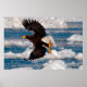 A Águia Cálida Sobre a Poster de Neve vem com uma bela Águia voando sobre o oceano com gelo flutuando na água. esta é uma bela foto nesta poster