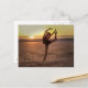 Com um sentimento de alegria, a jovem bailarina dança na praia quando o sol se põe. A cena faz um cartão-postal adorável.