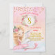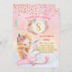 Uma bela bailarina segurando um coelhinho pequeno no estilo pintado à mão com flores delicadas acima de sua cabeça. O plano de fundo tem uma falha no ouro no topo. Um convite para comemorar o doce aniversário de sua garota.
