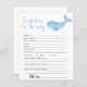 Um pequeno a caminho com este convite de chá de fraldas sob o tema do mar, apresentando baleia bebê em aquarelas moles azuis.