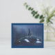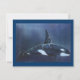 As natações de baleias KIller nas reflexões submarinas da luz solar.