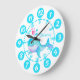 Relógio de baleias baleeiras. Este relógio divertido para crianças inclui minutos e horas para ajudar a fazer a brincadeira de criança de contar o tempo. Design e pintura aquosa de Sarah Trett. Um excelente a um quarto de galinha ou de água. Ideal para crianças que estão aprendendo a ler um rosto de relógio.