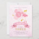 Convite de aniversário para bailarina personalizada em rosa e ouro com roxo estrelado de volta. Apresentando bailarina em um tutu rosa bonito, simulando asas de ouro brilhantes e balões cor-de-rosa. Doce, menina, chic e elegante. Vem com design frontal e traseira. Personalizar com o nome, a idade e os detalhes da parte. Opções de imagem da Ballerina disponíveis. Perfeito para balé ou fada.