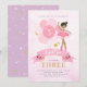 Convite de aniversário para bailarina personalizada em rosa e ouro com roxo estrelado de volta. Apresentando bailarina em um tutu rosa bonito, simulando asas de ouro brilhantes e balões cor-de-rosa. Doce, menina, chic e elegante. Vem com design frontal e traseira. Personalizar com o nome, a idade e os detalhes da parte. Opções de imagem da Ballerina disponíveis. Perfeito para balé ou fada.