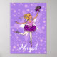 Ballerina púrpura - cabelos loiros / cabelos leves - poster de arte. Poster de diversão para um quarto de bailarina bonito. Projetada exclusivamente por Sarah Trett. Poster lê Abigail ou personalize com o nome da sua pequena bailarina.