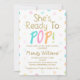 Simples bolinhas colorido ela está pronta para o convite para chá de fraldas. Este design apresenta um dourado falso e um cabeçalho multicolorido que não pode ser alterado. O fundo é branco e o verso do convite apresenta o padrão de bolinhas multicolorido. Esta neutra em termos de gênero que ela está pronta para convidar para pop está pronta para ser personalizada e é uma forma divertida de convidar convidados.